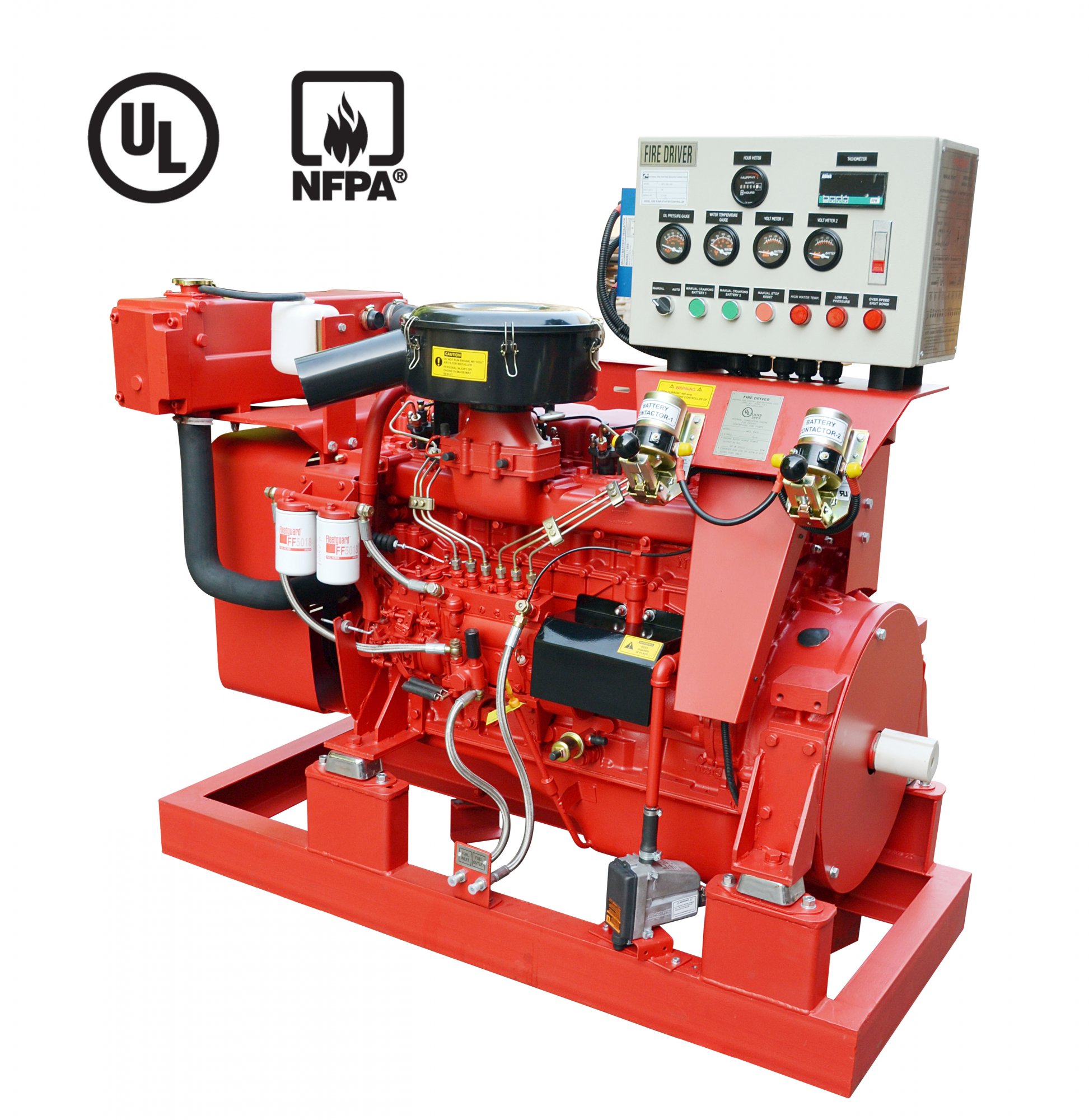 Fire DriverĀ® diesel engines are specially designed and manufactured for fire fighting applications according to UL1247 standard. The better torque characteristics of these engines ensure reliable operation in emergency conditions. These engines are UL listed and comply with the requirements for diesel engine drives as detailed in NFPA 20.
